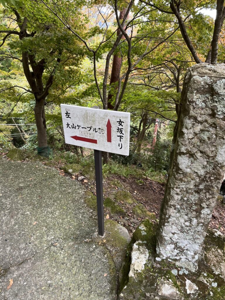 分かれ道の看板 左折して正面参道を登ります レッツトレーニング😁 脚に不安のある方は、右折してらくらく参道のスロープを登り下さい