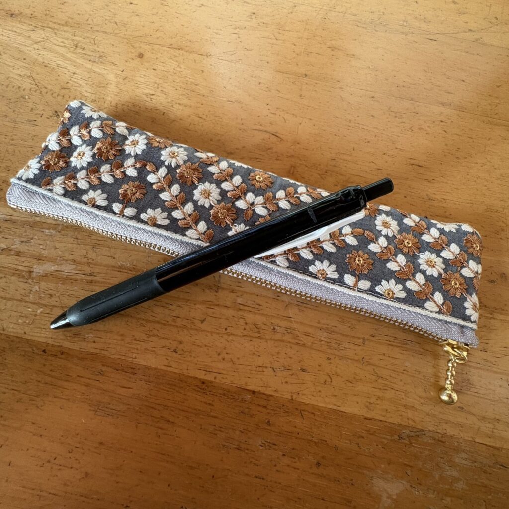 シンプルな作りですが、刺繍リボンのおかげで素敵なペンケースになりました。