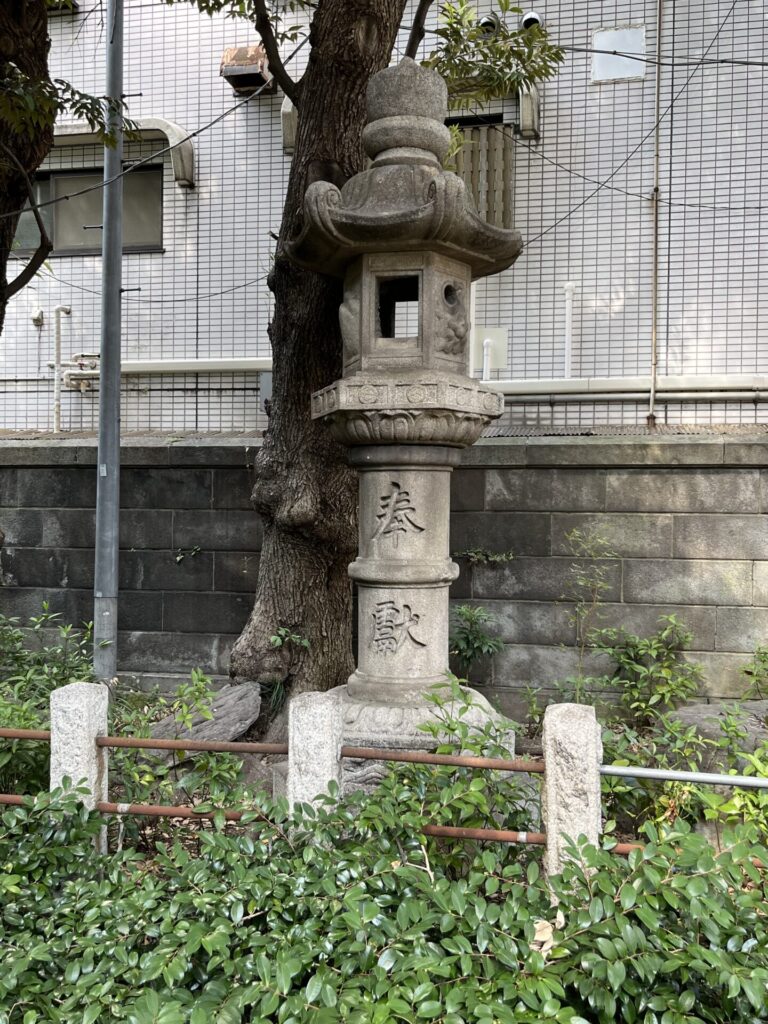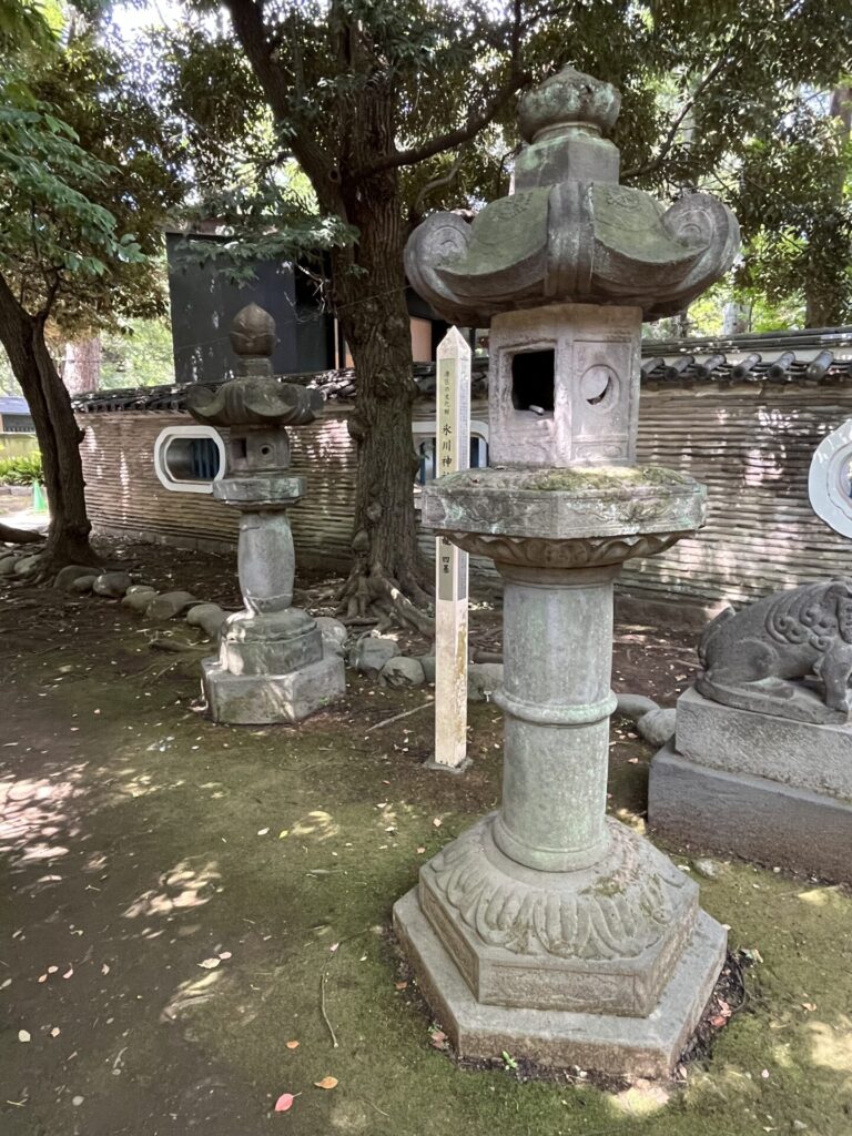 氷川神社の石燈篭 水野忠之が奉納したものです 水野忠之は徳川吉宗が行った享保の改革を主導した老中です 岡崎藩水野家は吉良邸討入赤穂浪士を三田の中屋敷に預かった家としても知られています