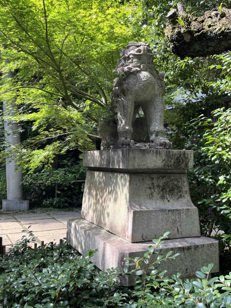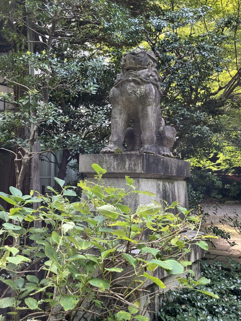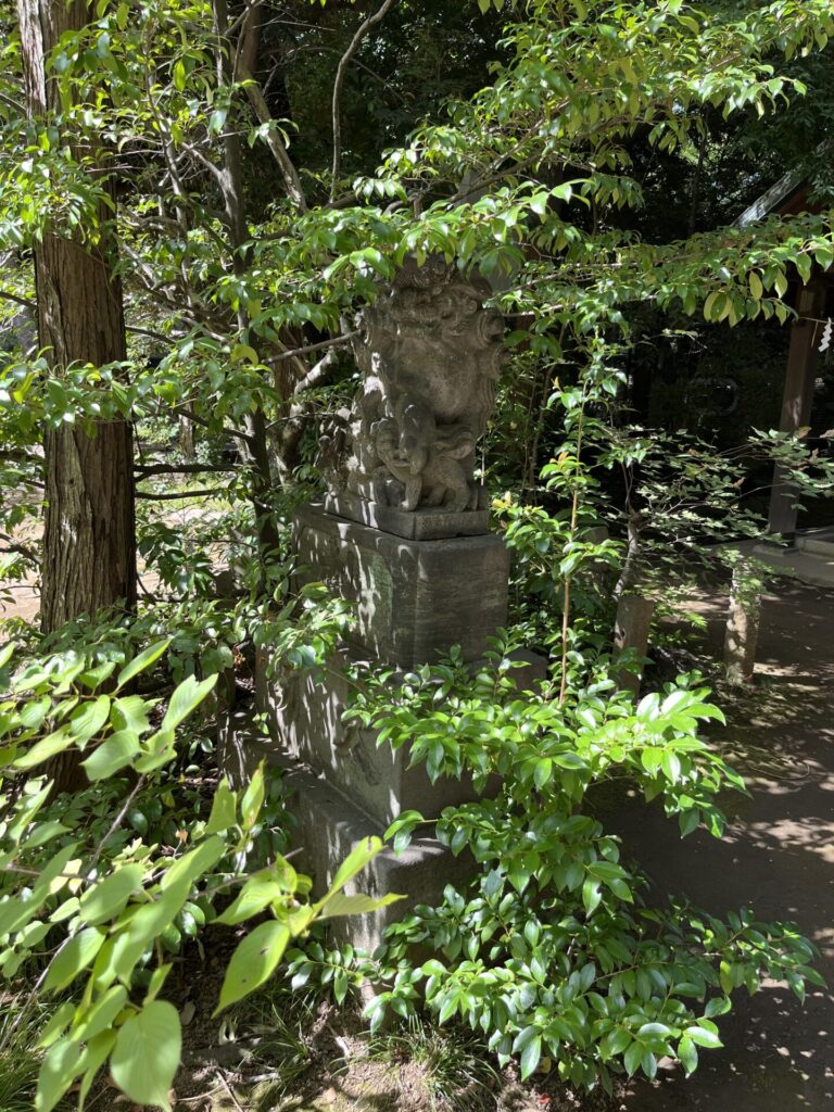 三の鳥居の狛犬です 左の狛犬は緑と同化してます
