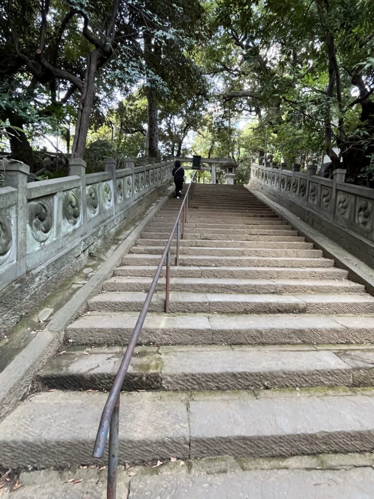 下を見下ろしてパシャリ📷、石段は狭いので慎重に下ります