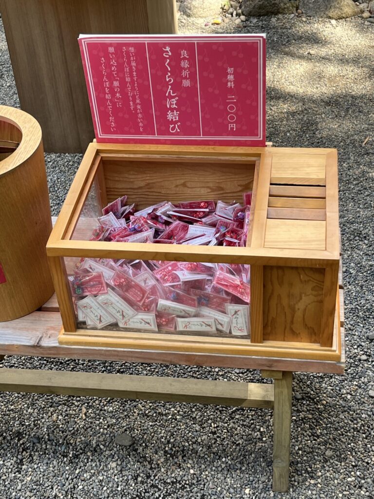 お詣りも無事すんだので、境内を散策 かわったおみくじ さくらんぼ結び 木に結んで、さくらんぼの実のようです🍒