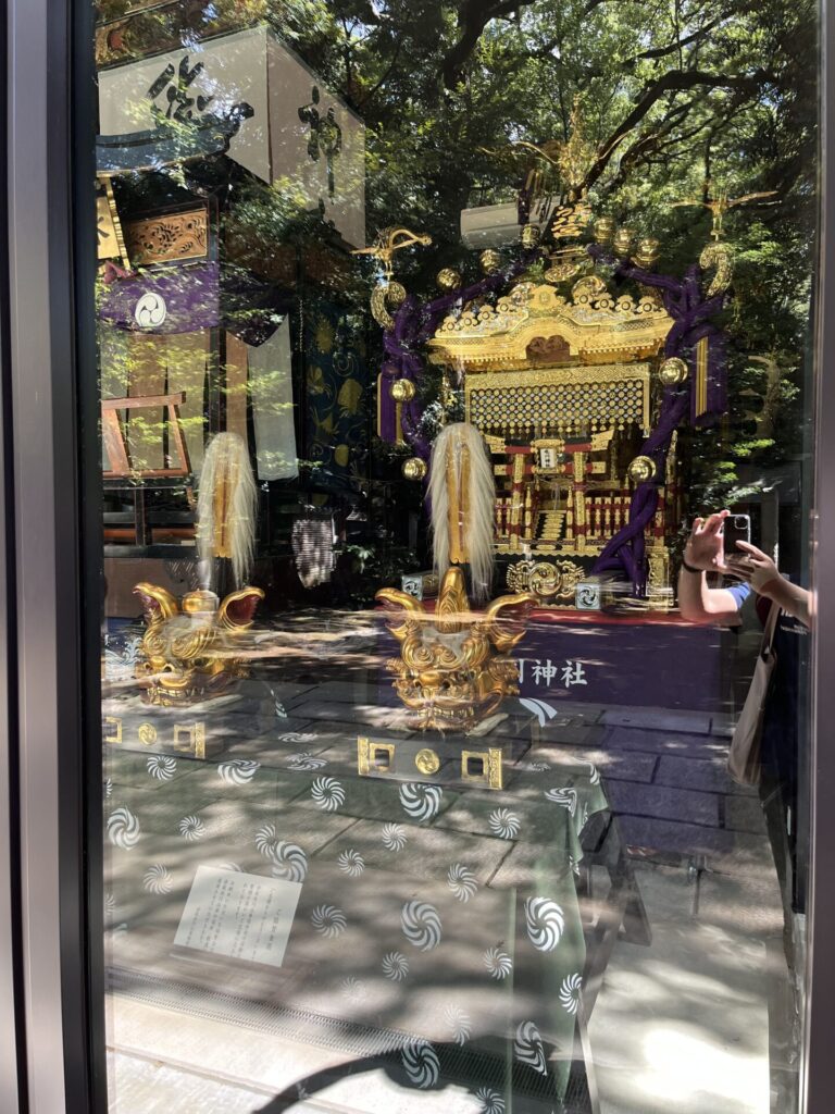 中門を出て、赤坂氷川神社祭展示場 荘厳な神輿が展示してあります