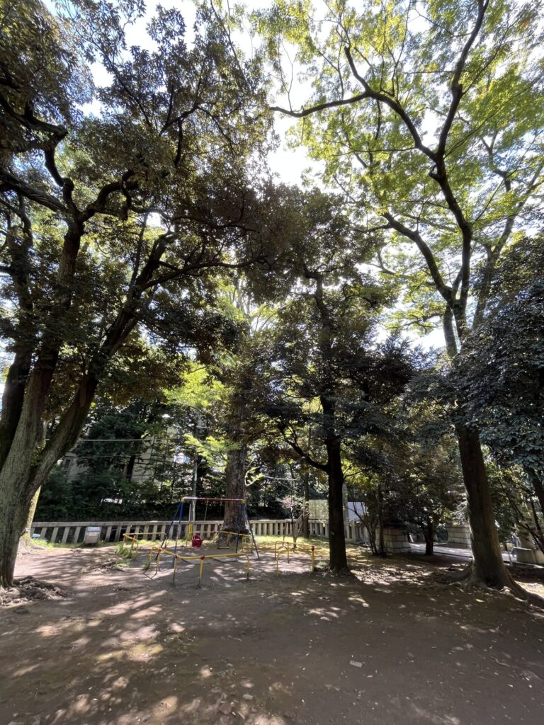 大銀杏の周りは広場になっており、遊具も設置されています 土の上で遊べる貴重な空間ですね