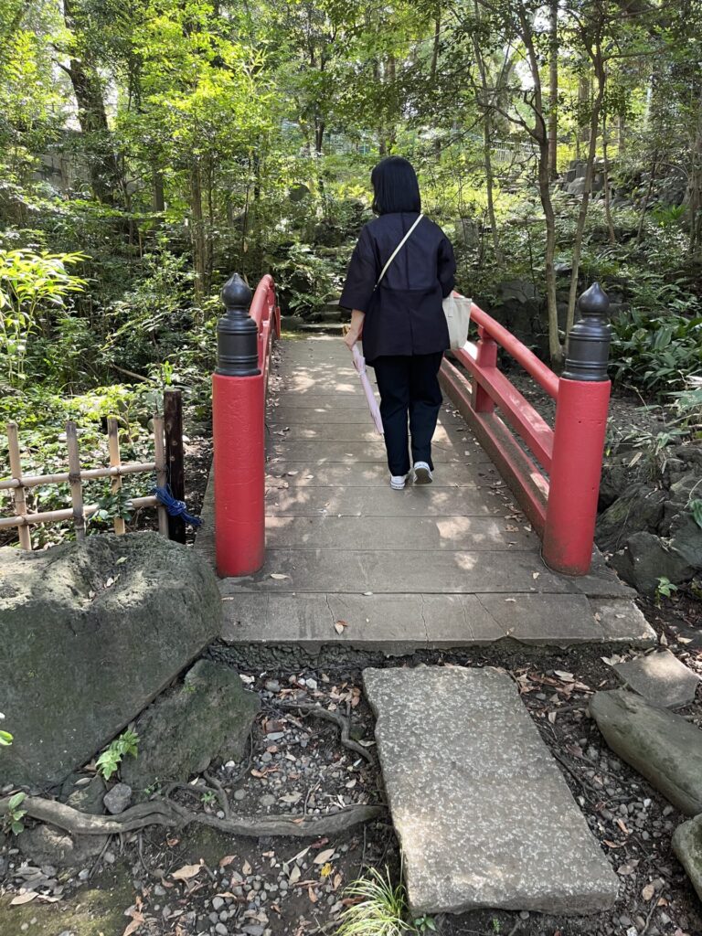 正面参道に戻って、今度は反対側 赤い橋をわたります 奥の階段を上がっていくと、さっきの広場に出れるようです