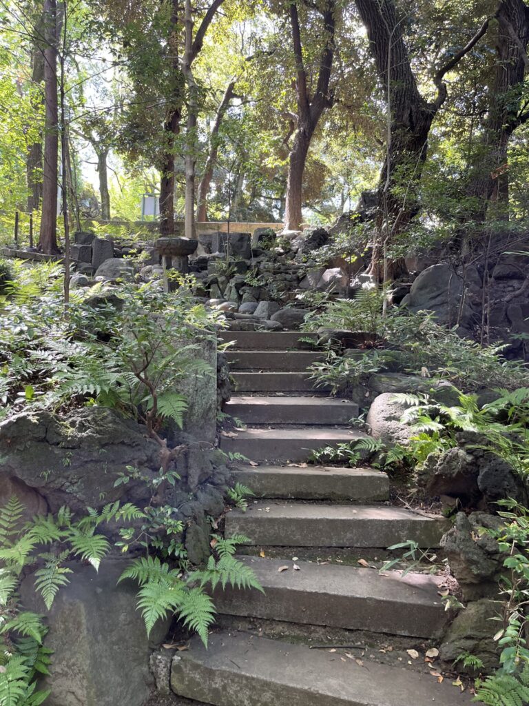 階段を上って上の段に、急なので手摺りにおつかまり下さい 石段自体は、高くはないです