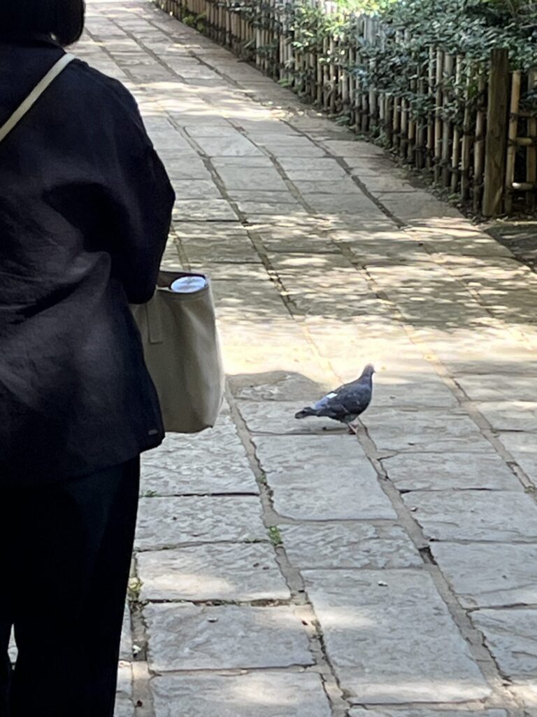 それでは、帰ります っと、かわいいハトのお見送り🐦 奥さん呼ばれていますね😄