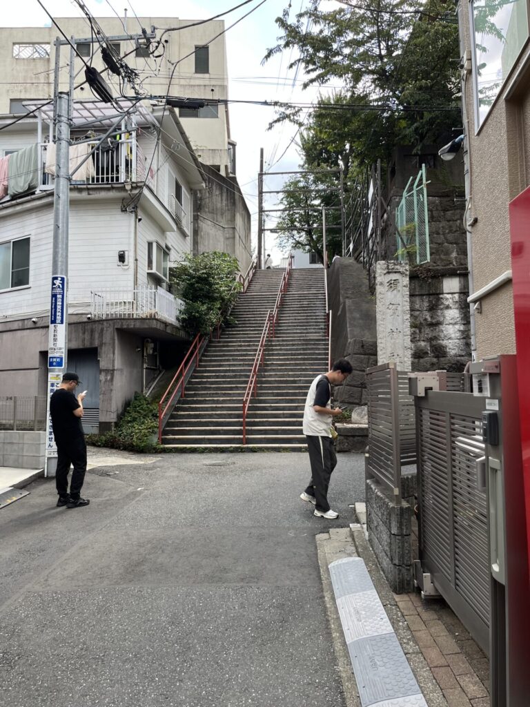 映画「君の名は」で有名な、『東京四谷総鎮守 須賀神社』に到着です 外国人の旅行者がしきりに撮影しています📷