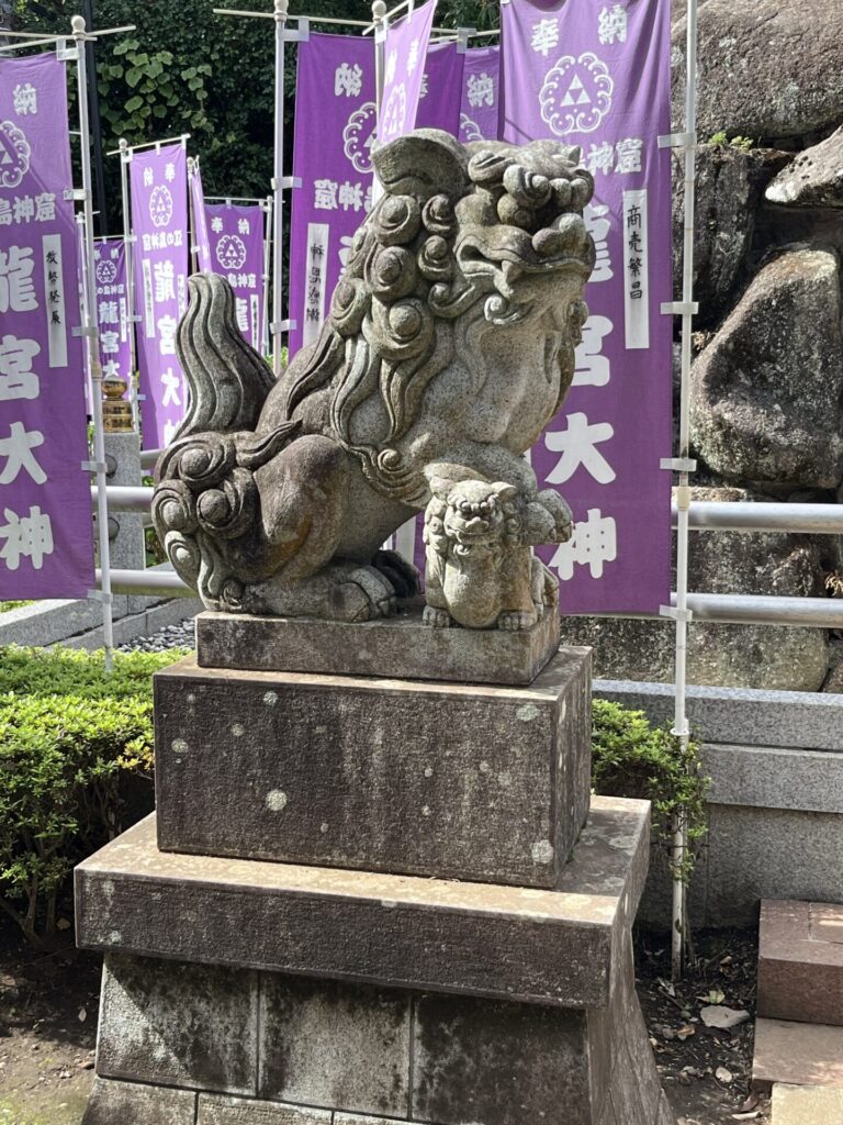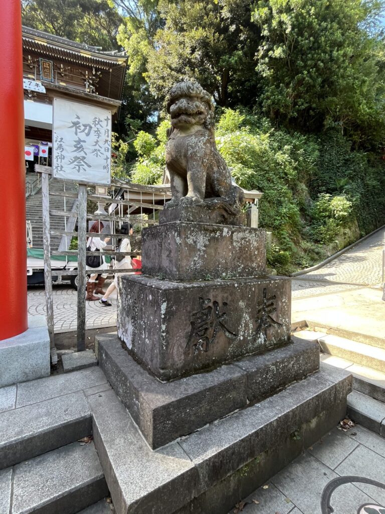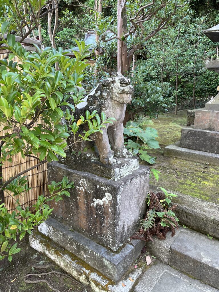 こちらも古そうな、狛犬のお出迎え あらためまして、奥津宮をお詣りします🙏 御祭神は、多紀理比賣命をお祀りしています 三姉妹の一番上の姉神で、海を守る神様と言われています 江戸時代まで本宮御旅所といい、岩屋の御本尊を奥津宮に移し、台風等から守っていました 天保十三年(1842年)再建