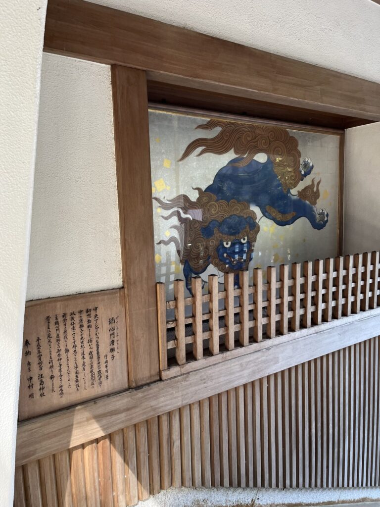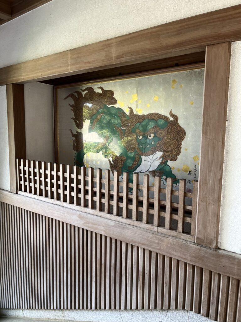 門の両側には、日本画家・片岡華陽画伯による唐獅子図が飾られています