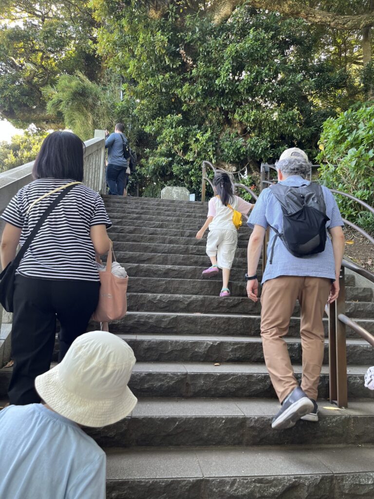 階段 階段 また階段😭 振り返ると、眼下にヨットハーバーの絶景が、元気がでます それにしても、子供は元気ですね😅