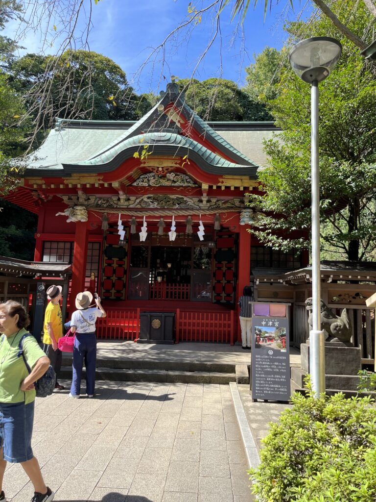 狛犬様にご挨拶して、中津宮をお詣りします🙏 御祭神は、市寸島比賣命をお祀りしています 文徳天皇仁寿三年(853年に慈覚大師によって創建されました 朱色の鮮やかな社殿で、特に女性から信仰を集めています 美の女神様で、美しくなりたいと願う参拝者に人気です 奥さんも、いつもより余計にお願いしています