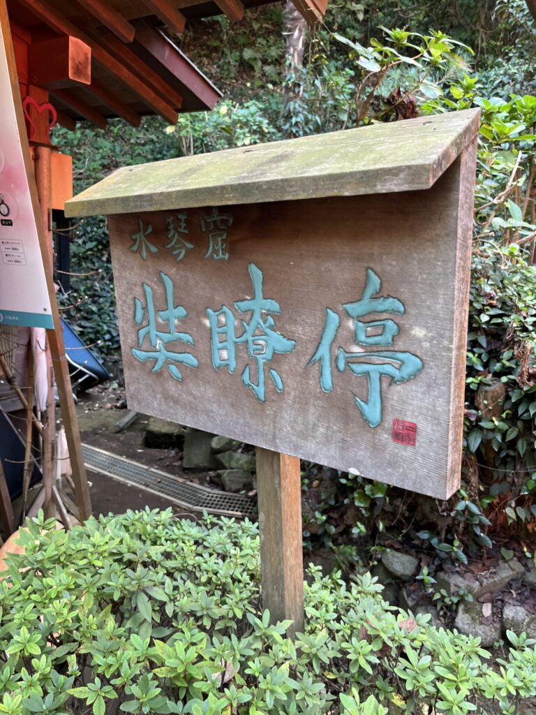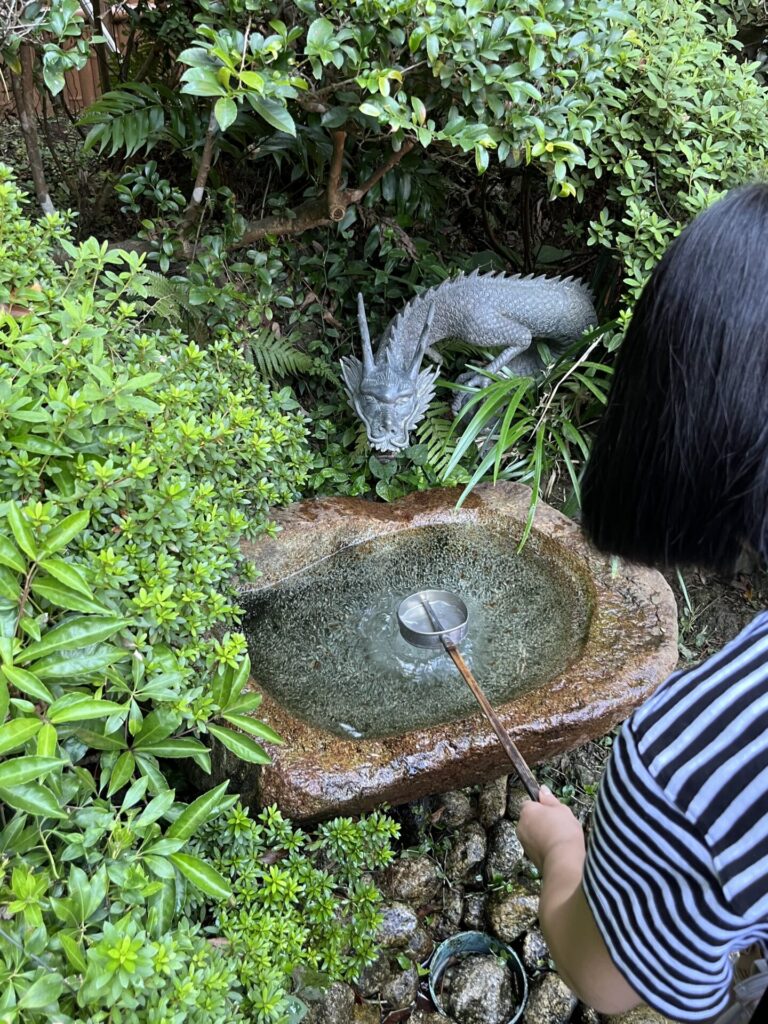 社殿左に、水琴窟があります 龍の口から出る水を、下の円(水門石)の中心部に水を垂らします すると、美しい音色を楽しめます 心身を清め、運気向上のご利益があります