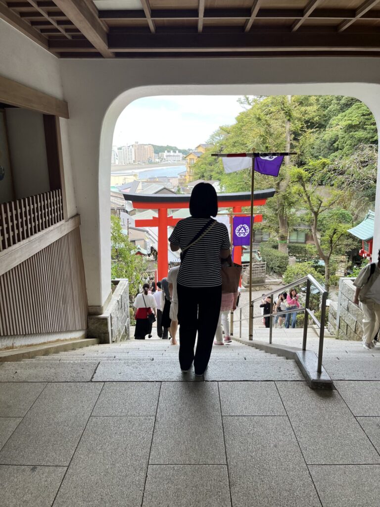 行きは大変でしたが、帰りはあっという間🎵 盛りだくさんの、江島神社を後にします 江島神社の歴史と、三姉妹の女神の御神徳を賜ることができました また、古く「江の島詣」をしていた、人々に思いを馳せることができました 後の世にも、残していかなければいけませんね