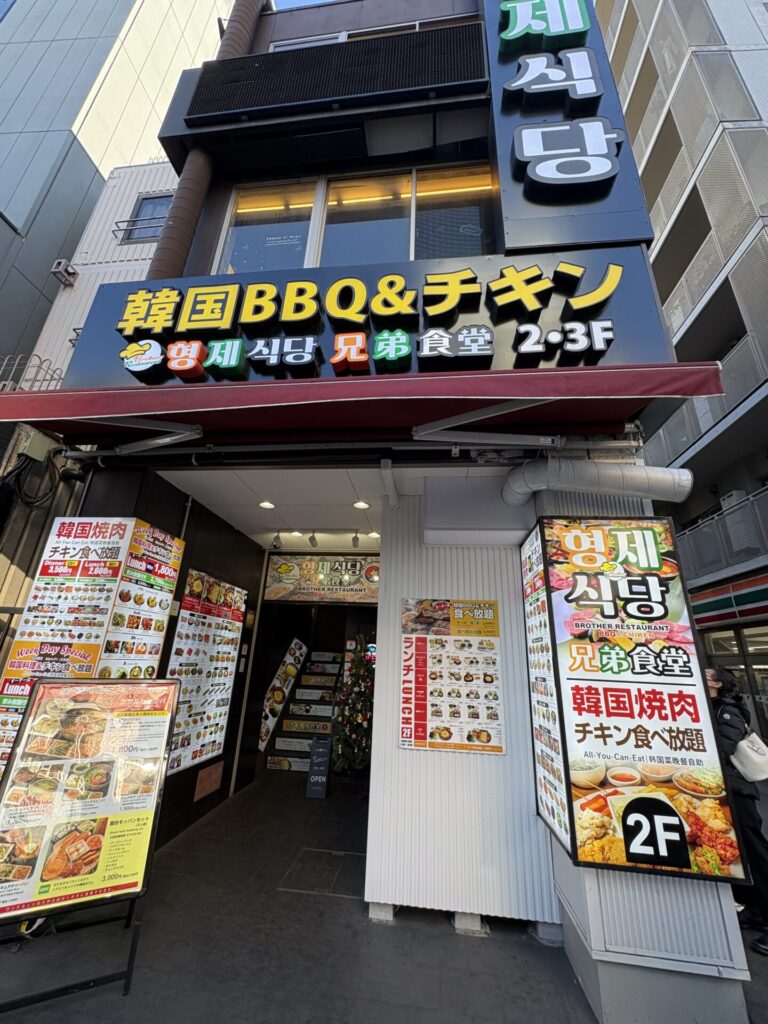 今回は駅から150m、徒歩で2分ほど、派手で目立つ看板の「兄弟食堂」でランチにしたいと思います!
