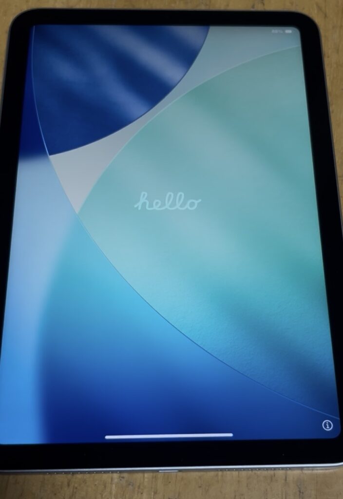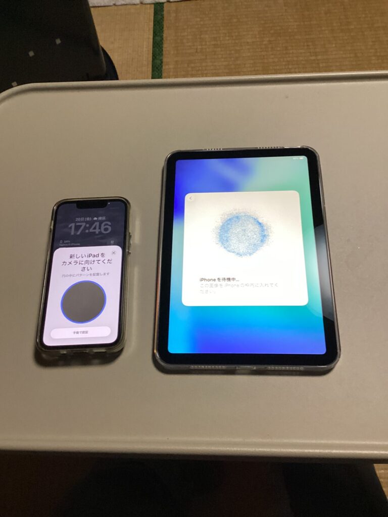 ブルーにしました 電源ON ハロー iPhone13miniをとなりに置いて同期開始