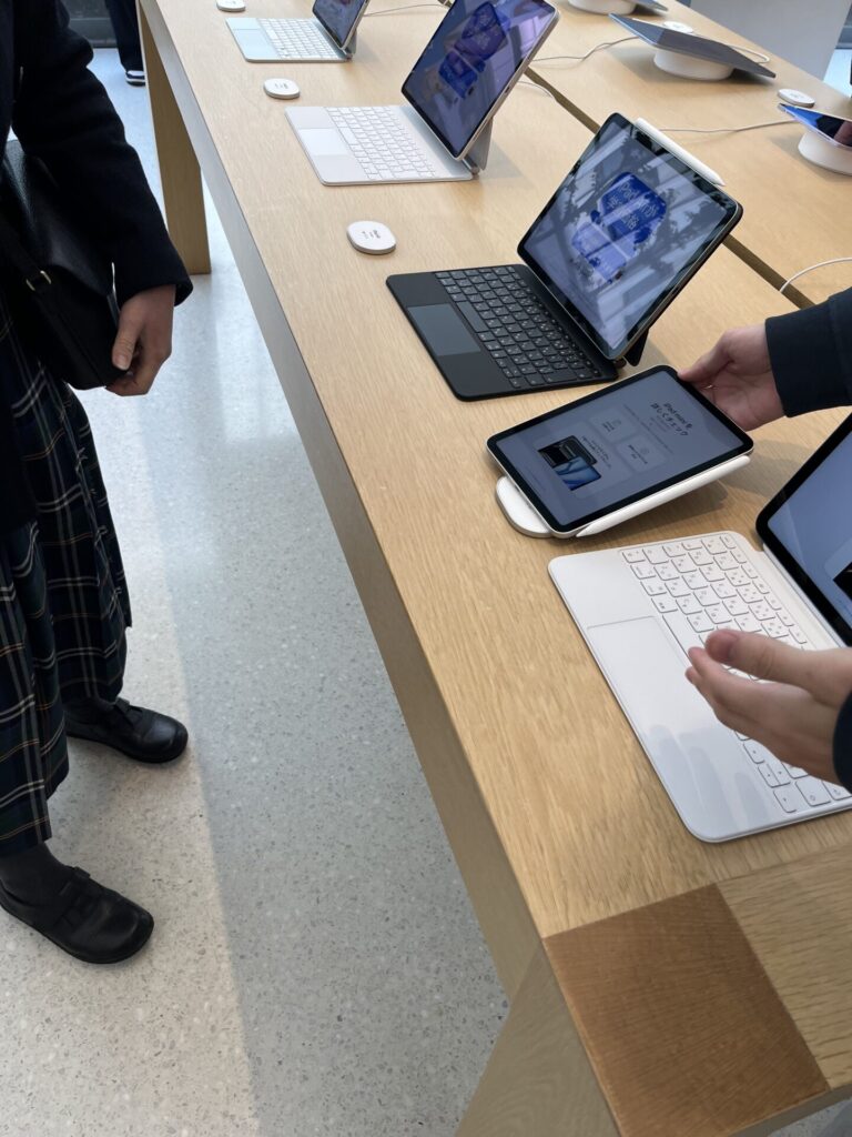 いったん正面入口に回って入店 キョロキョロすると、「何かお探しですか」 そう、今日のガイドさんは、キミに決めた❗️ さっそく、iPadminiを解説してもらう
