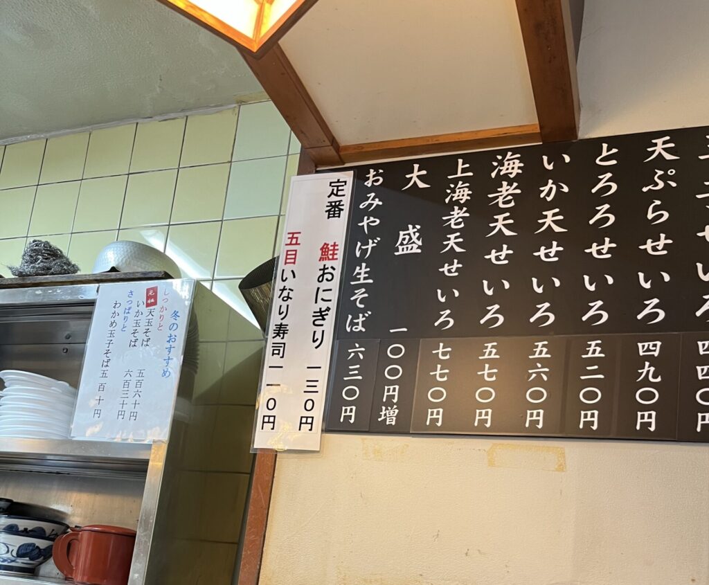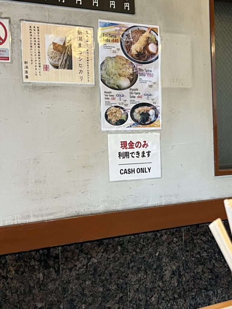 「天玉そば 2つ 1つ大盛りで」「お代は前金。現金のみになってます」