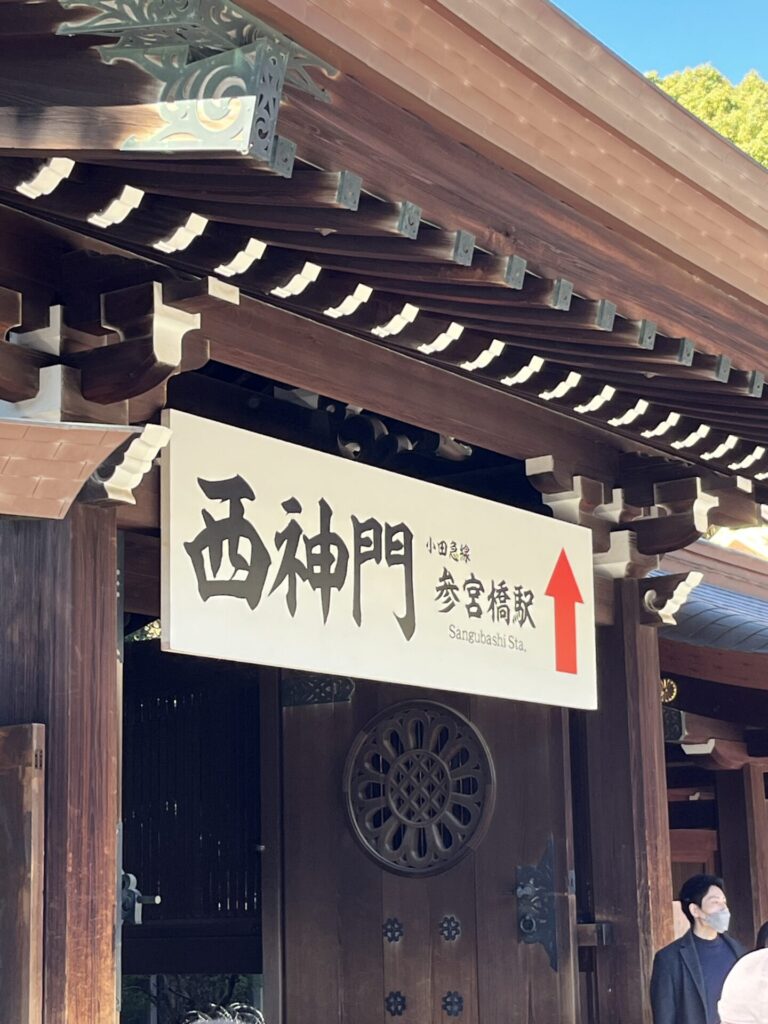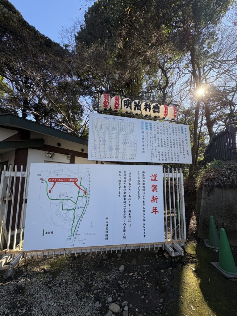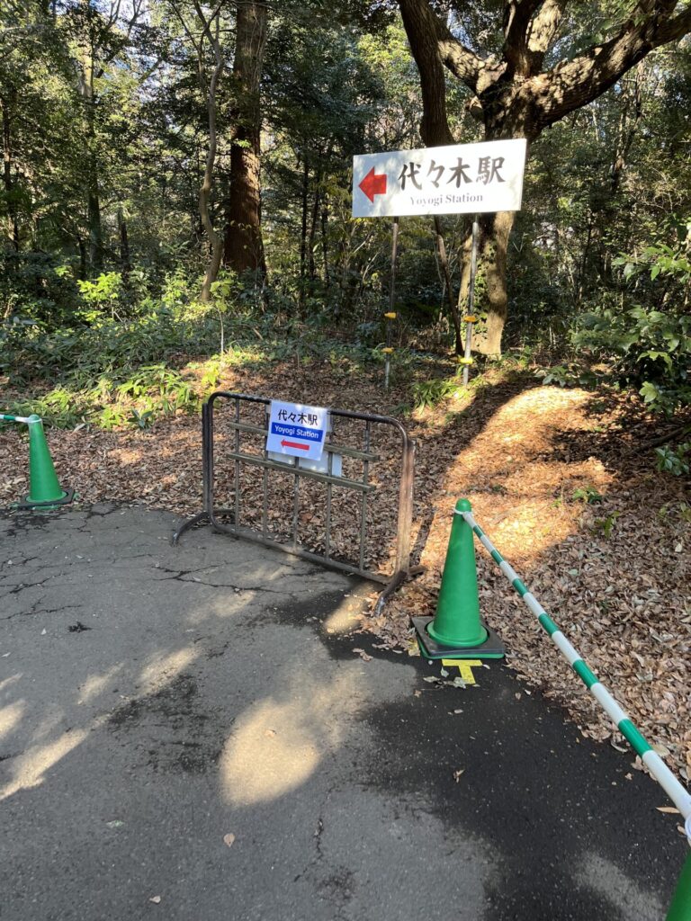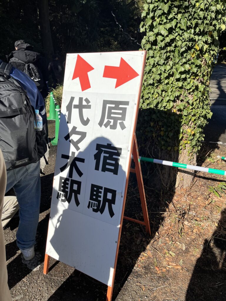 おみくじの左に看板が、帰りは代々木駅方面へ