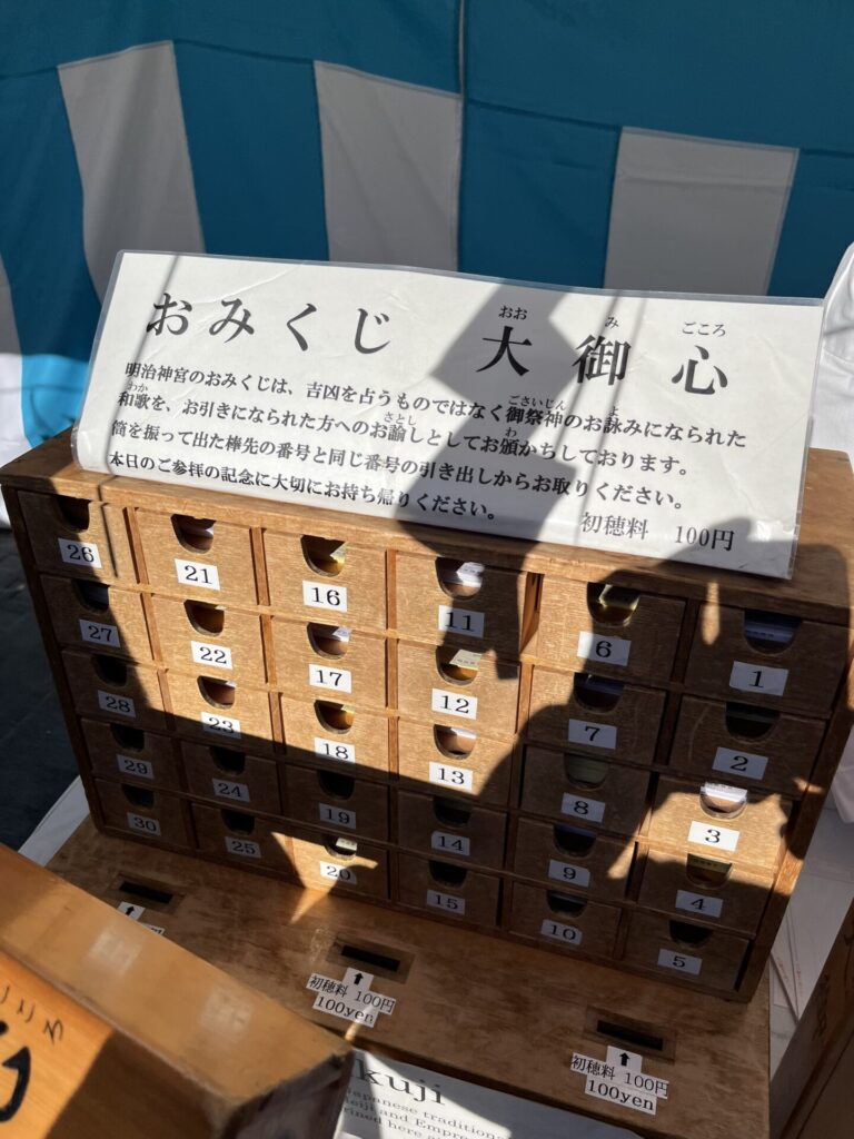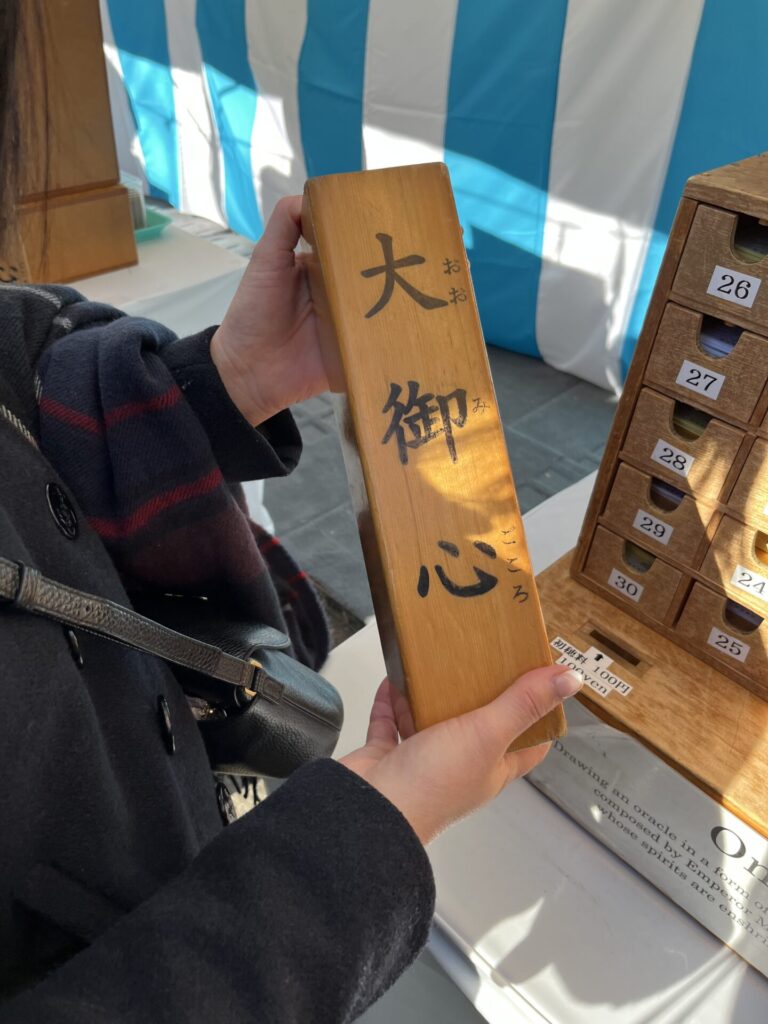 おみくじは、初穂料100円 良心的です😄 大御心を振って、出た棒の番号の引き出しからいただきます