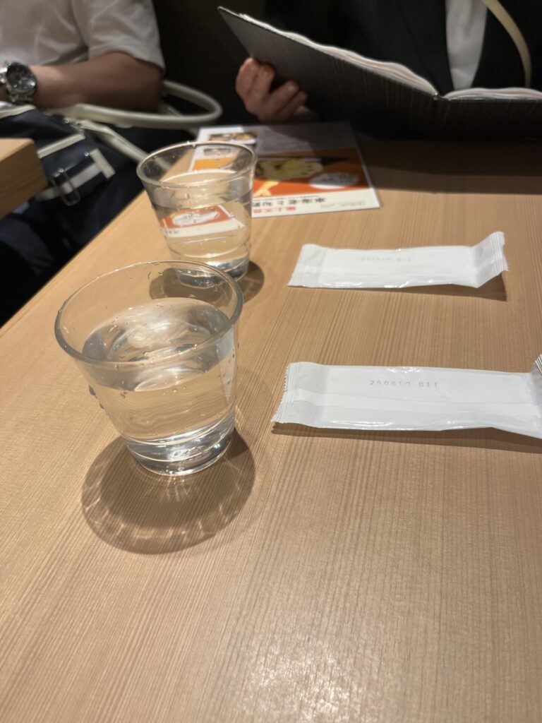 着席する時、お水とおしぼりが出てくる、フルサービス いいですねー 昭和世代には、心地よい😊