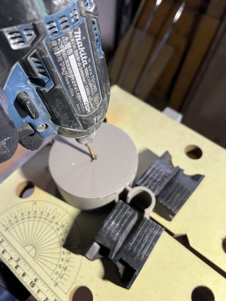 テッテレ〜♪ サラ取り錐で穴を開けます