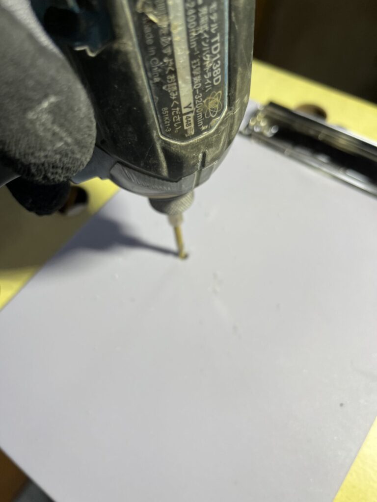 充電インパクトドライバーで、穴を開けます