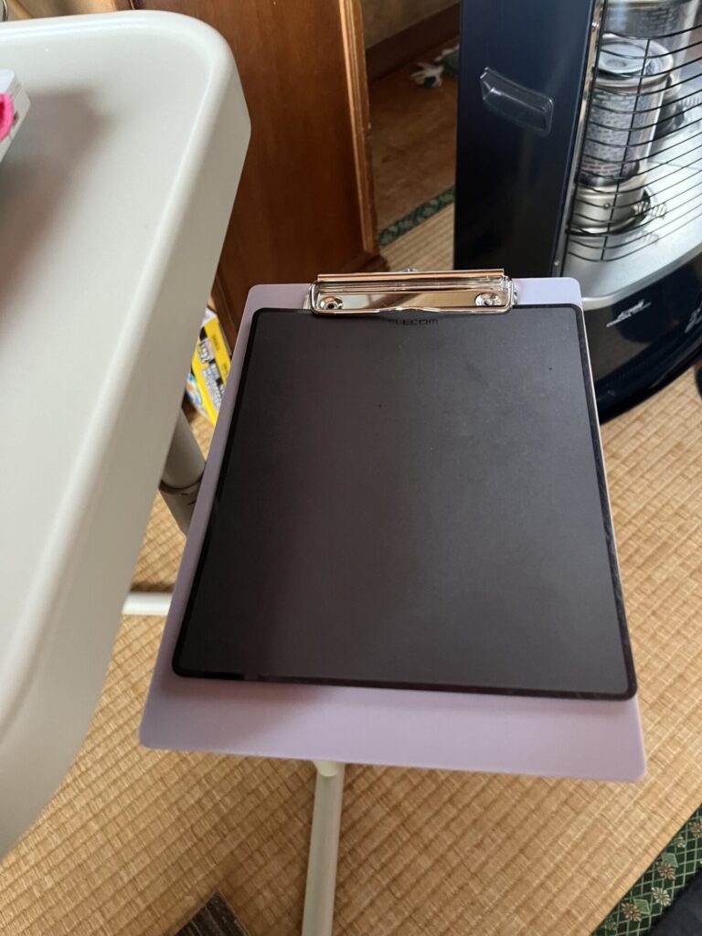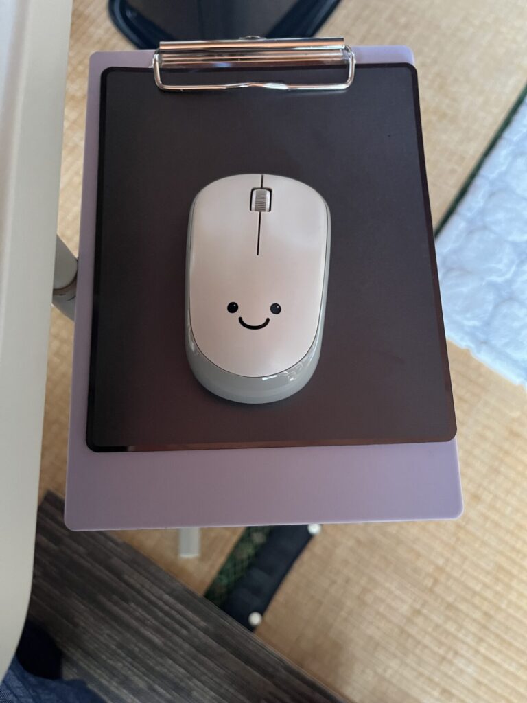100円ショップで買った、A5クリップホルダーをのせます からの〜 マウスパッドのせる〜