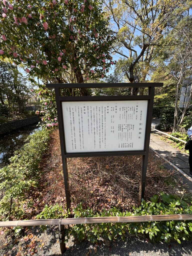 ちょうど桜の季節で、キレイでした🌸 御祭神と由緒看板です 境内の地図も載っていますね