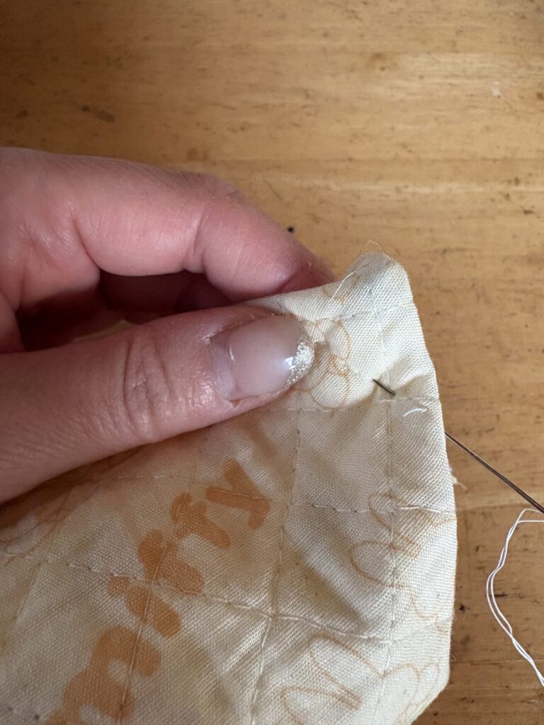 根本を内側に折ってキレイに整えながらかがっていけば出来上がりです✨