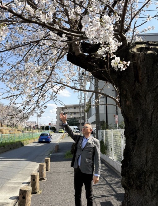 👩 「わ〜〜きれい。駅から出て桜並木っていいね。」