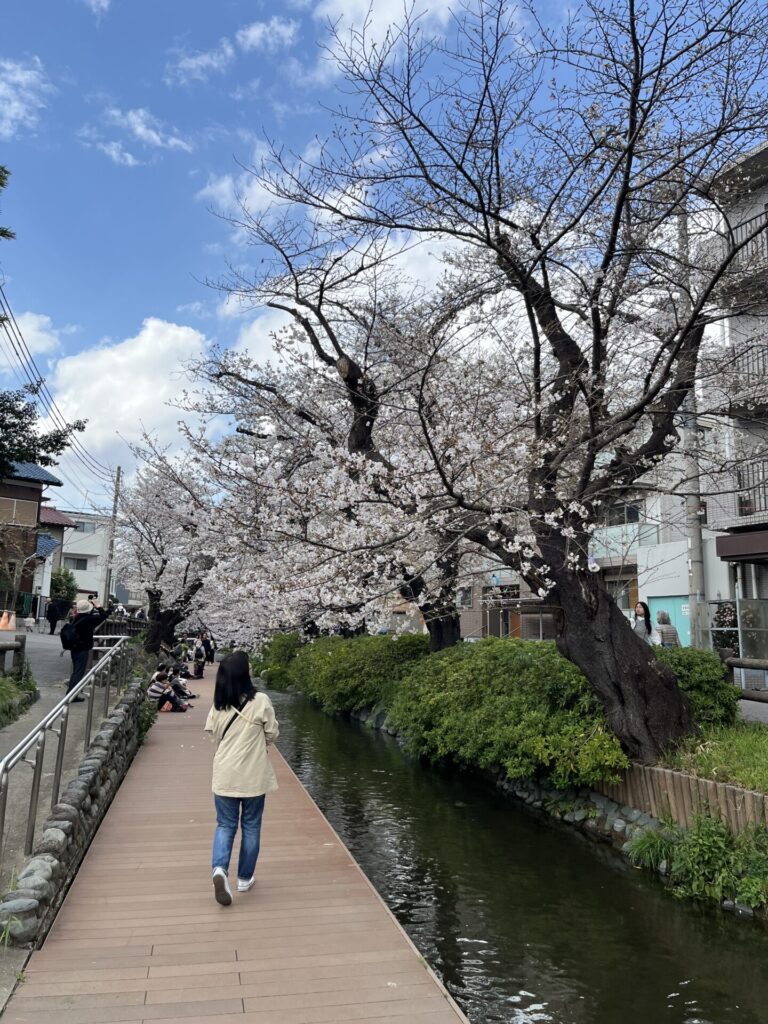 水路の両側に桜が続き、まるでやさしく包み込まれるような景色。満開の時期は、桜のトンネルの中を歩いているような気分になります。水面に映る桜も美しく、つい足を止めてしまう場所がたくさんありました。