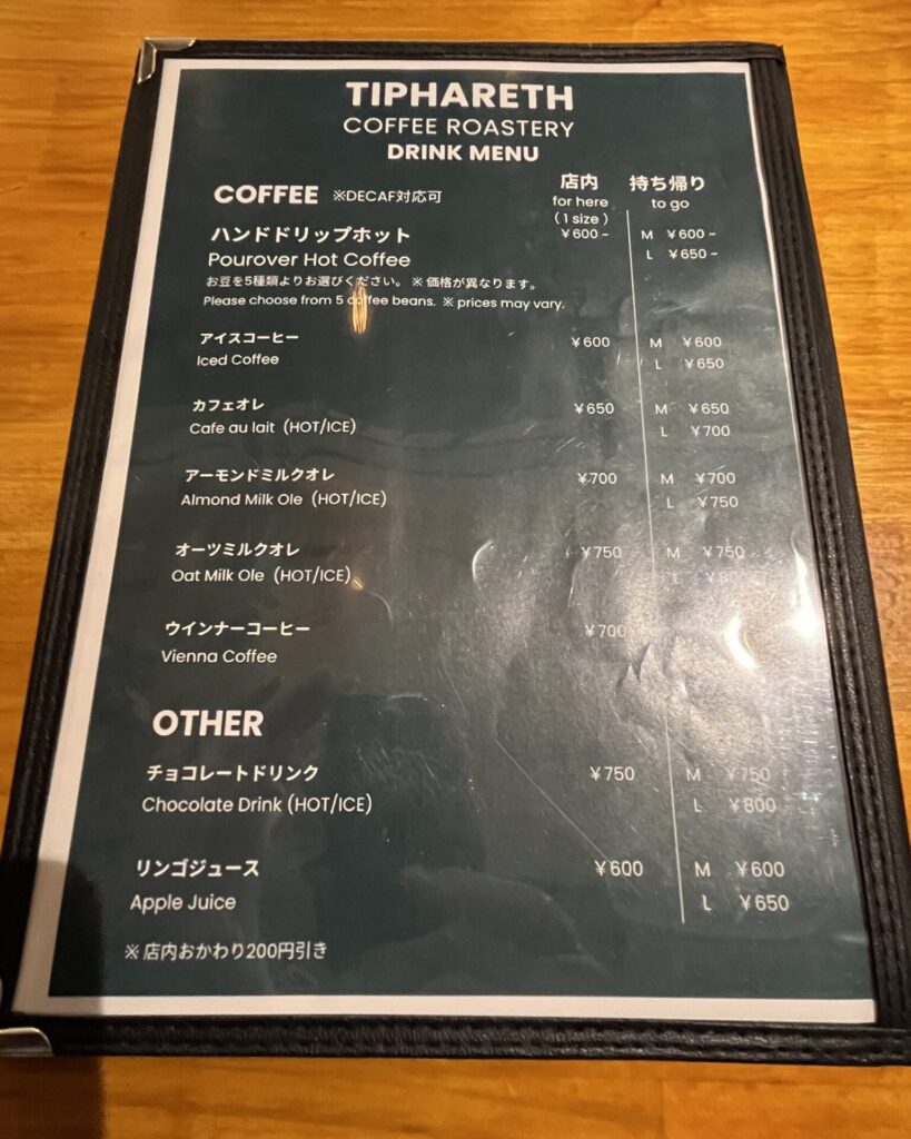 👨 ハンドドリップホットは、本日のコーヒー5種類から選べ、ミディアムブレンドを注文