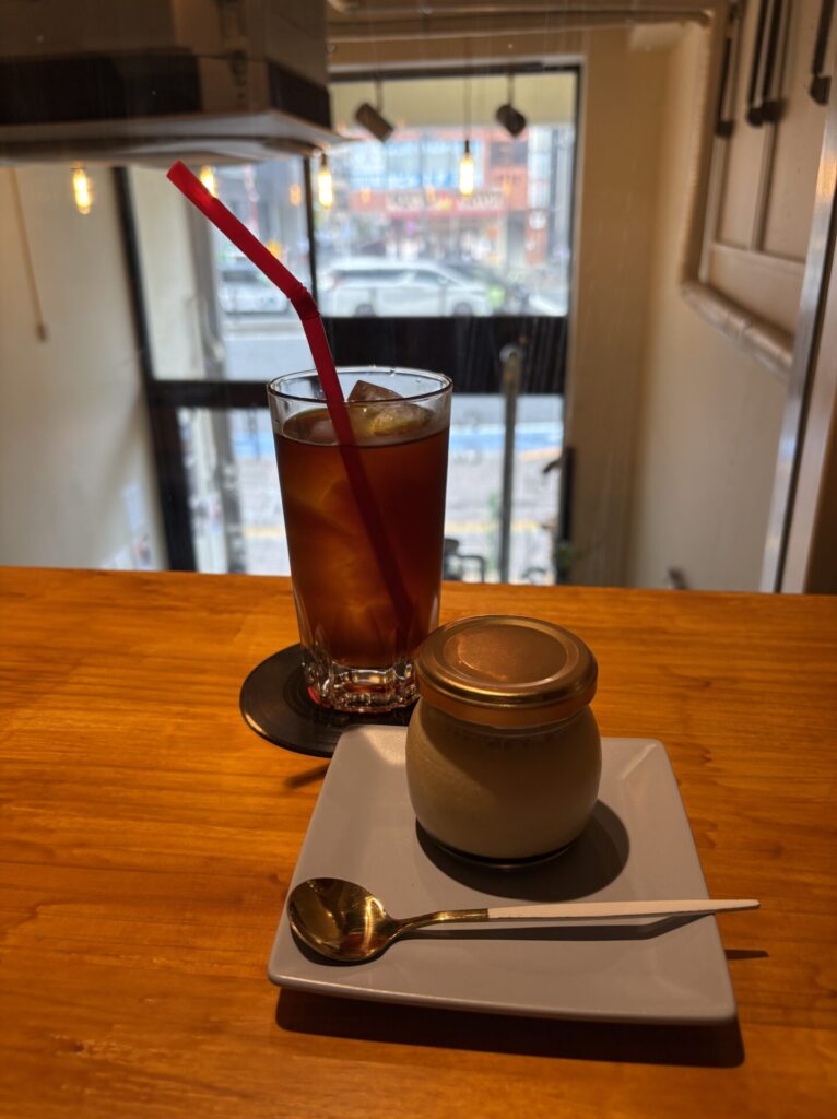 プリンはほんのりコーヒーの香りがしてなめらか、甘みもちょうどいい😊