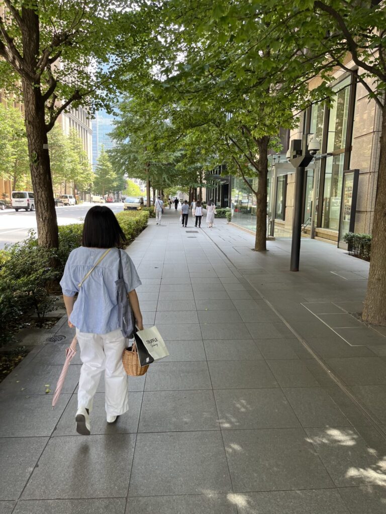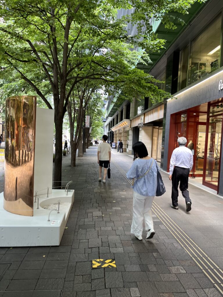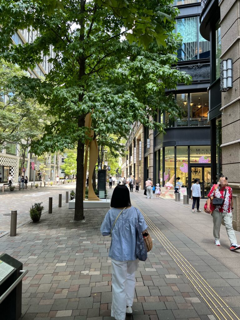 丸の内仲通りを歩きます 日陰は気持ちいいです 道のあちらこちらに、アート作品が、よくわかりませんが😁