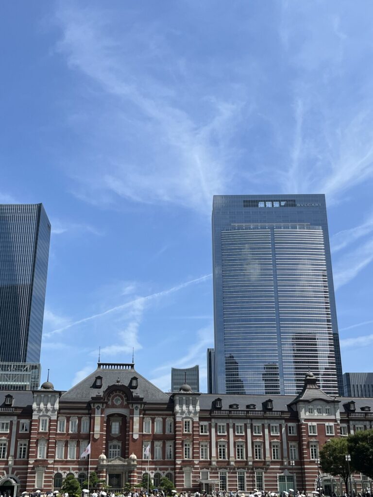 👩 天気が良くて青い空にレンガの駅舎が、映えますね〜