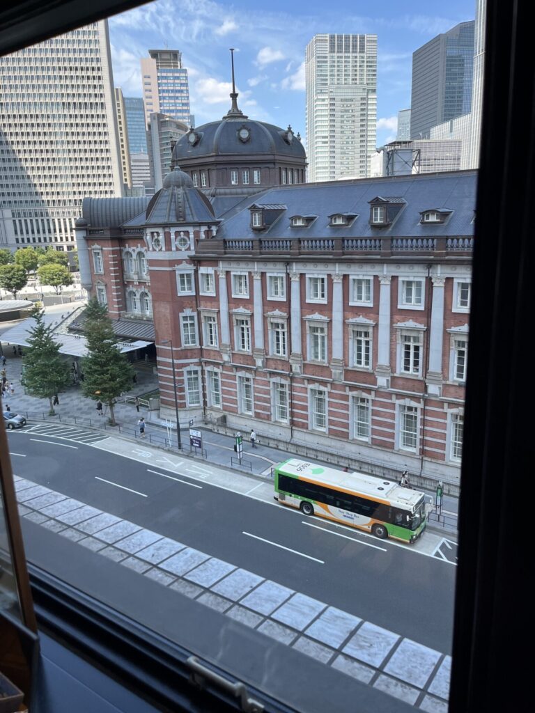 4階にある郵便局長室見学 間近に東京駅 ナイスビュー📷 偉くなった気分 えっへん😁