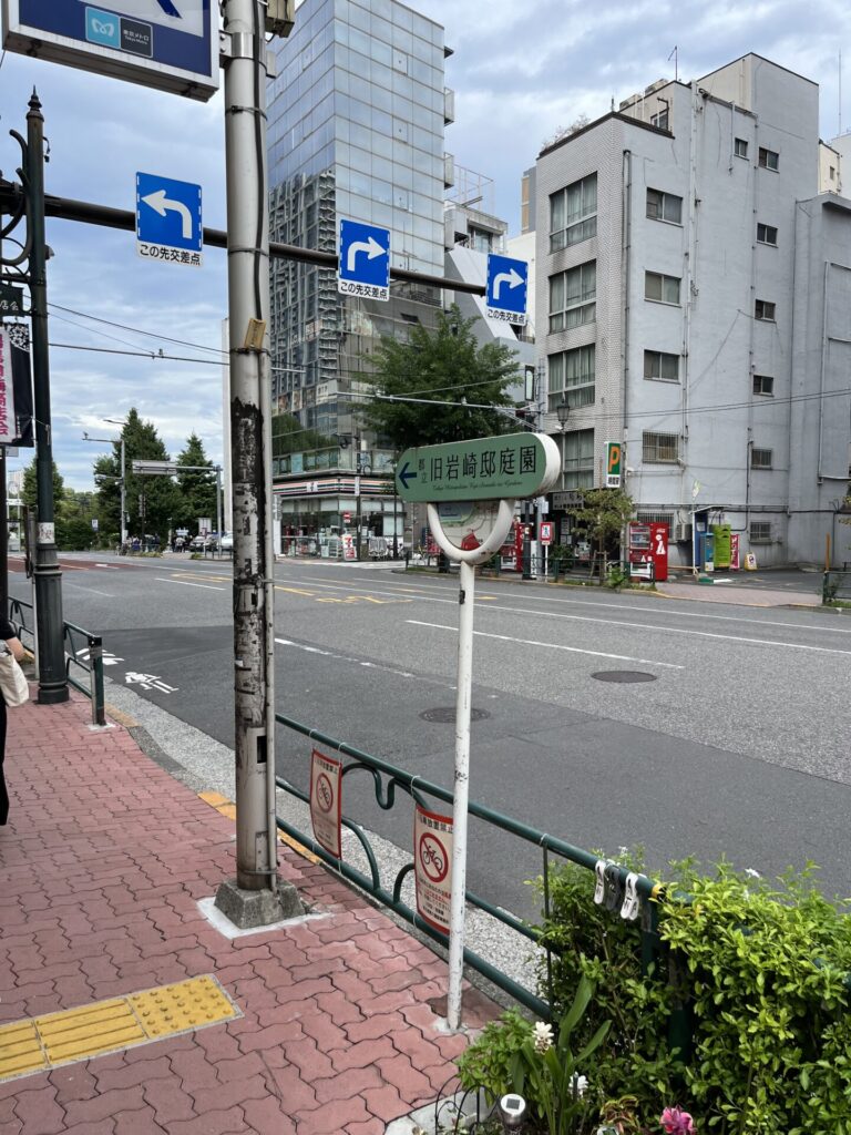 天神下交差点を右折 旧岩崎邸庭園の看板が見えました 目的地はもうすぐです