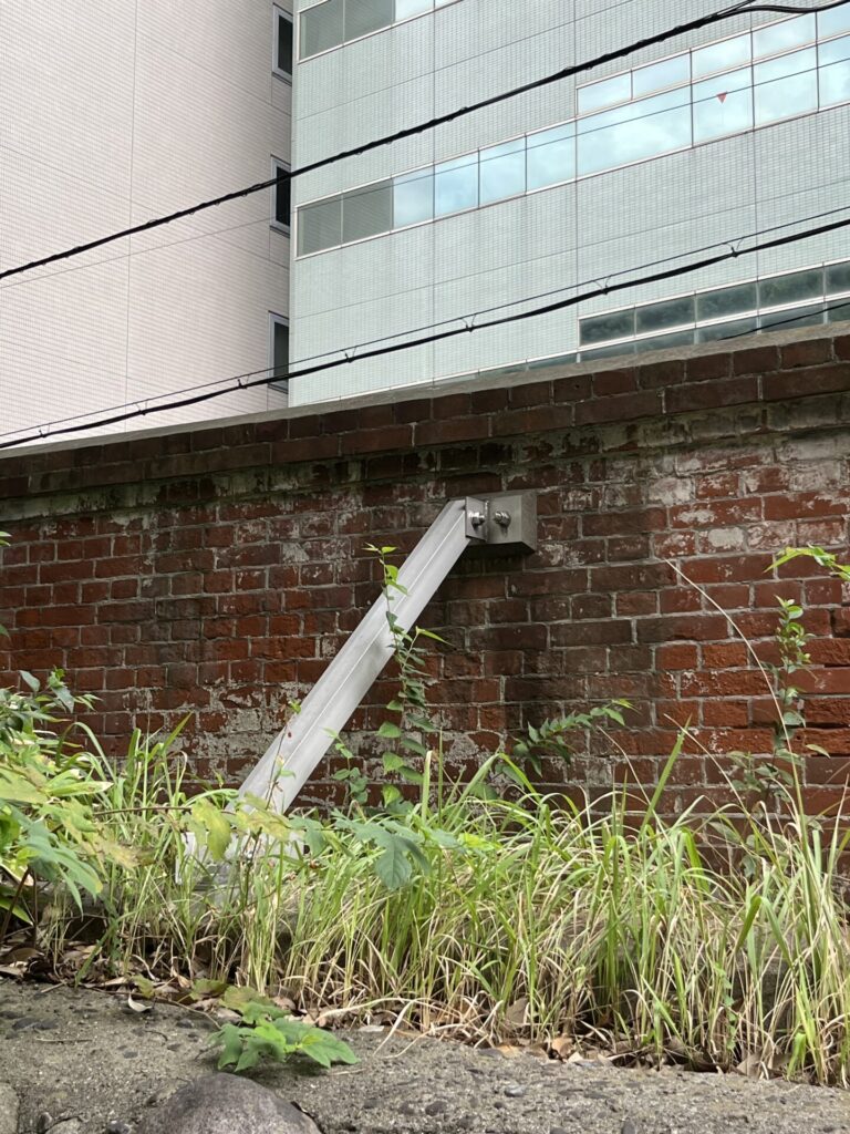煉瓦塀も重要文化財です 倒れない様に、補強してありますね