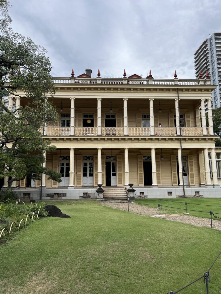 馬車道を進むと、ドーン 旧岩崎邸洋館が見えました 西洋のお城の様な、重厚な建物 思わずパシャリ📷