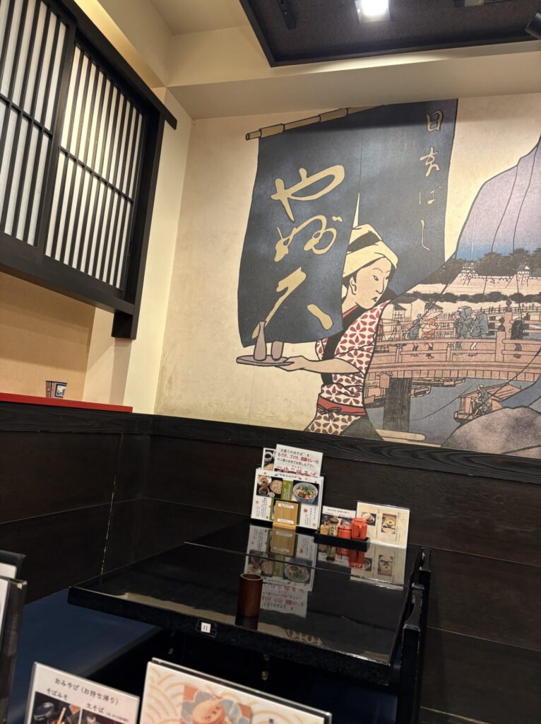 歴史ある両国駅西口の旧駅舎に、江戸の町屋を意識した吹抜け空間と、火の見櫓、原寸大の土俵がある両国らしい建物、両国-江戸NORENの中に『日本橋 やぶ久』は、あります