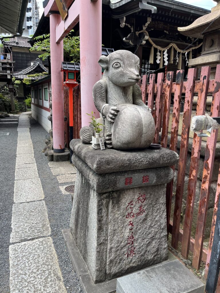 おたぬき様のお出迎え 「他を抜く」に通じることから、立身出世や勝負運、金運上昇があります