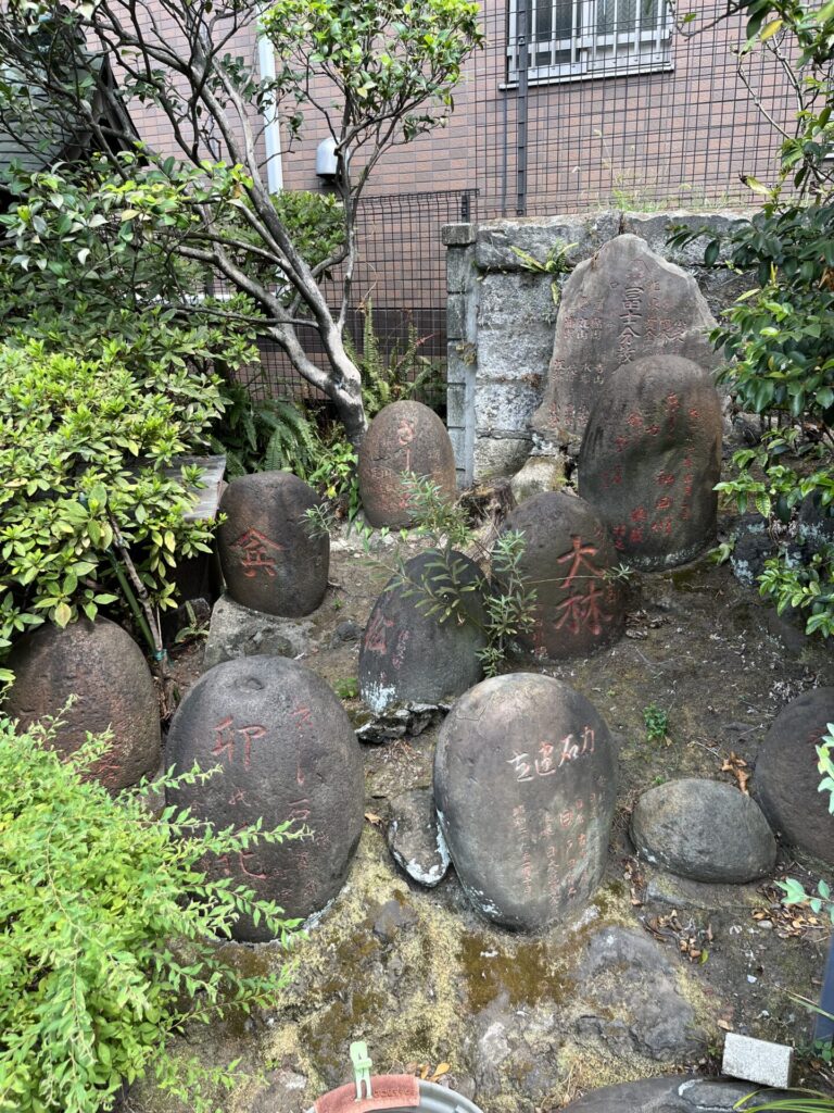 力石群(千代田区指定文化財) 江戸時代には、若者たちの間で、重量のある石を持ち上げて力自慢を競うことが流行しました