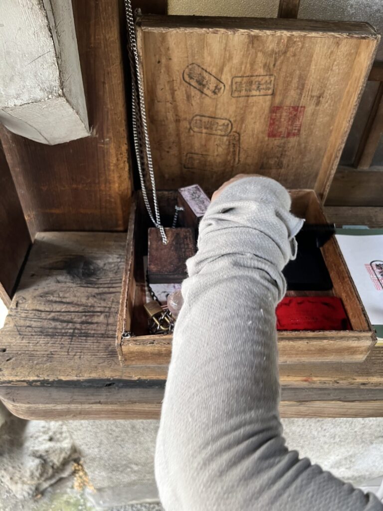 あれ? ここは、自分で押す式の御朱印なのですね😳 奥さん、見本を見ながら慎重に押します じょうずに おせました〜♪
